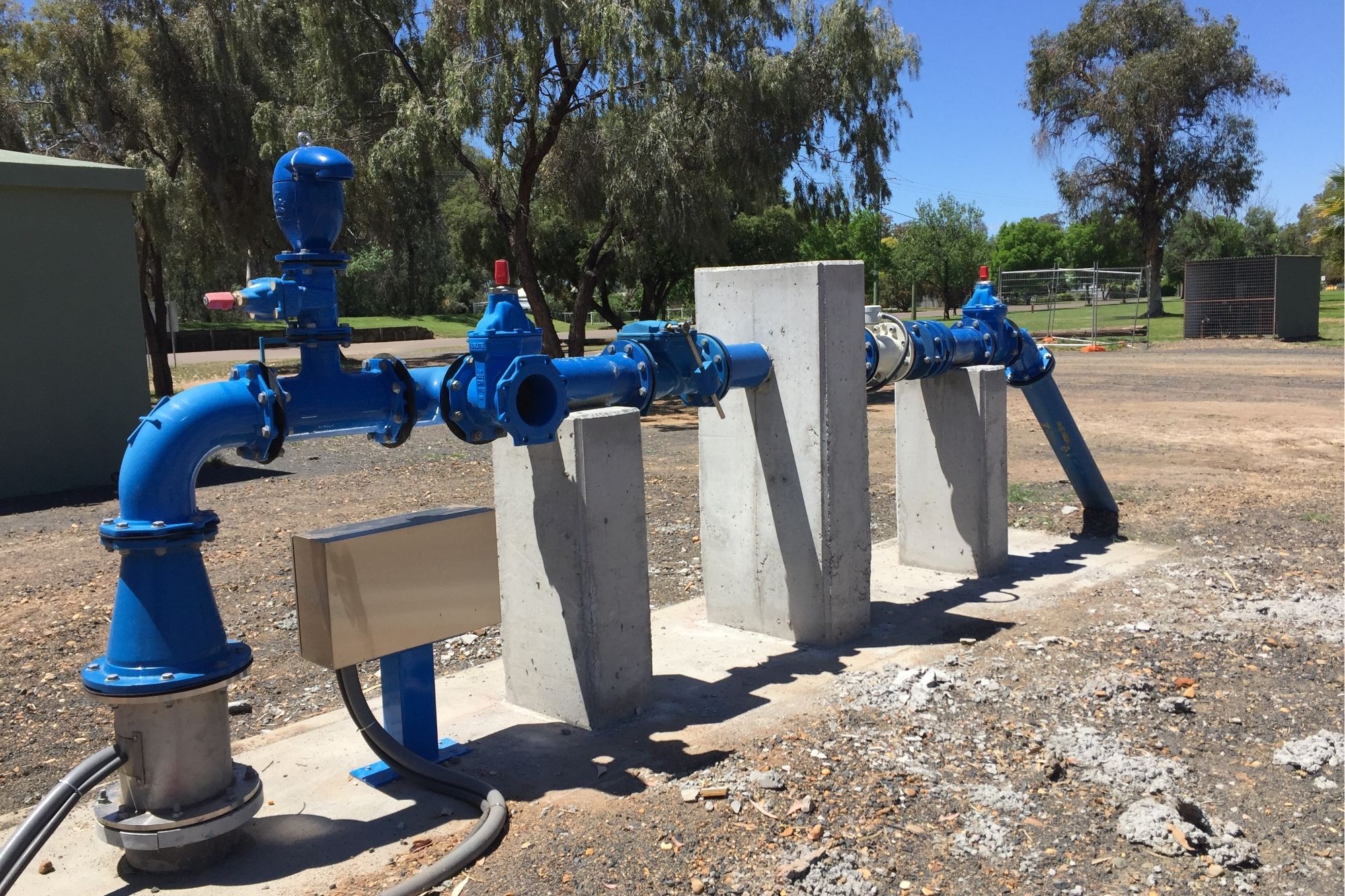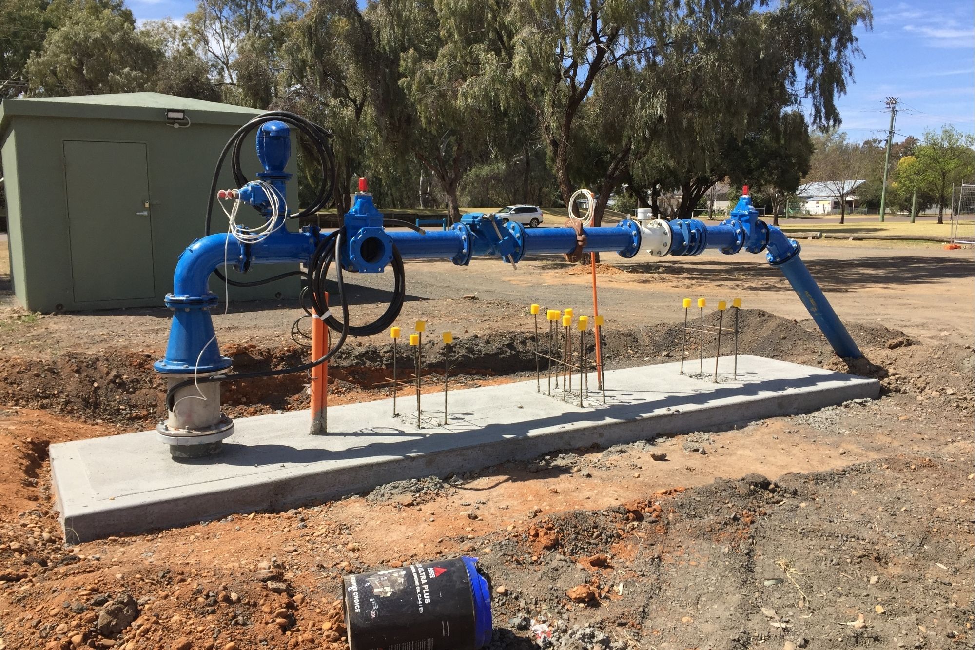 - Hydraulic Manifold arrangement at each bore head including Water meter, Valves, and all associated connection fittings to link to the existing adjacent mainline.
