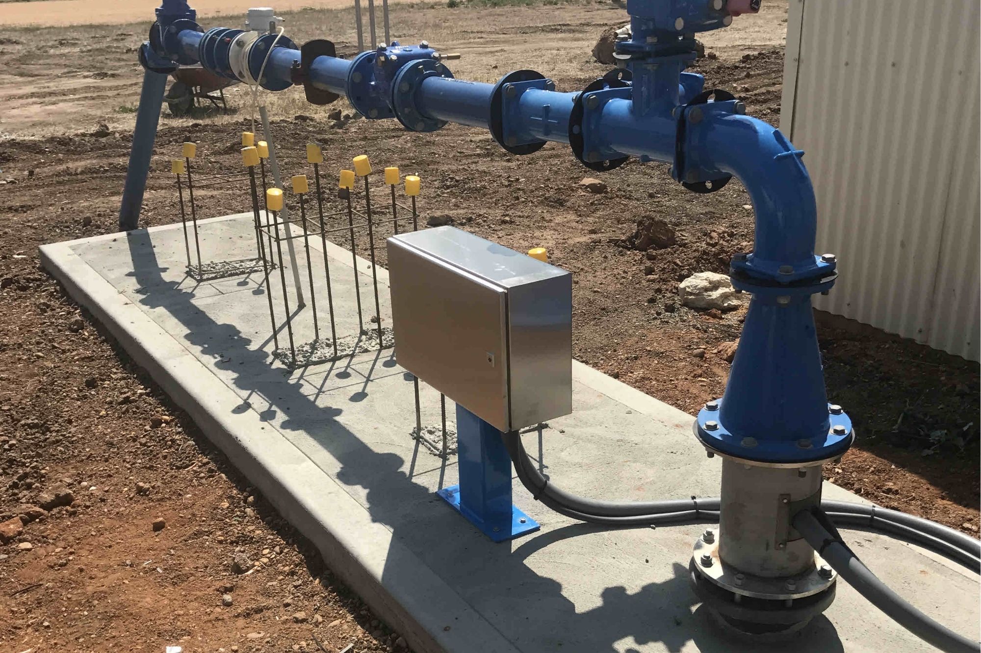 - Design supply and install suitably sized consumer mains from the supply authority transformer including transformer upgrades to each individual bore pump electrical shed.