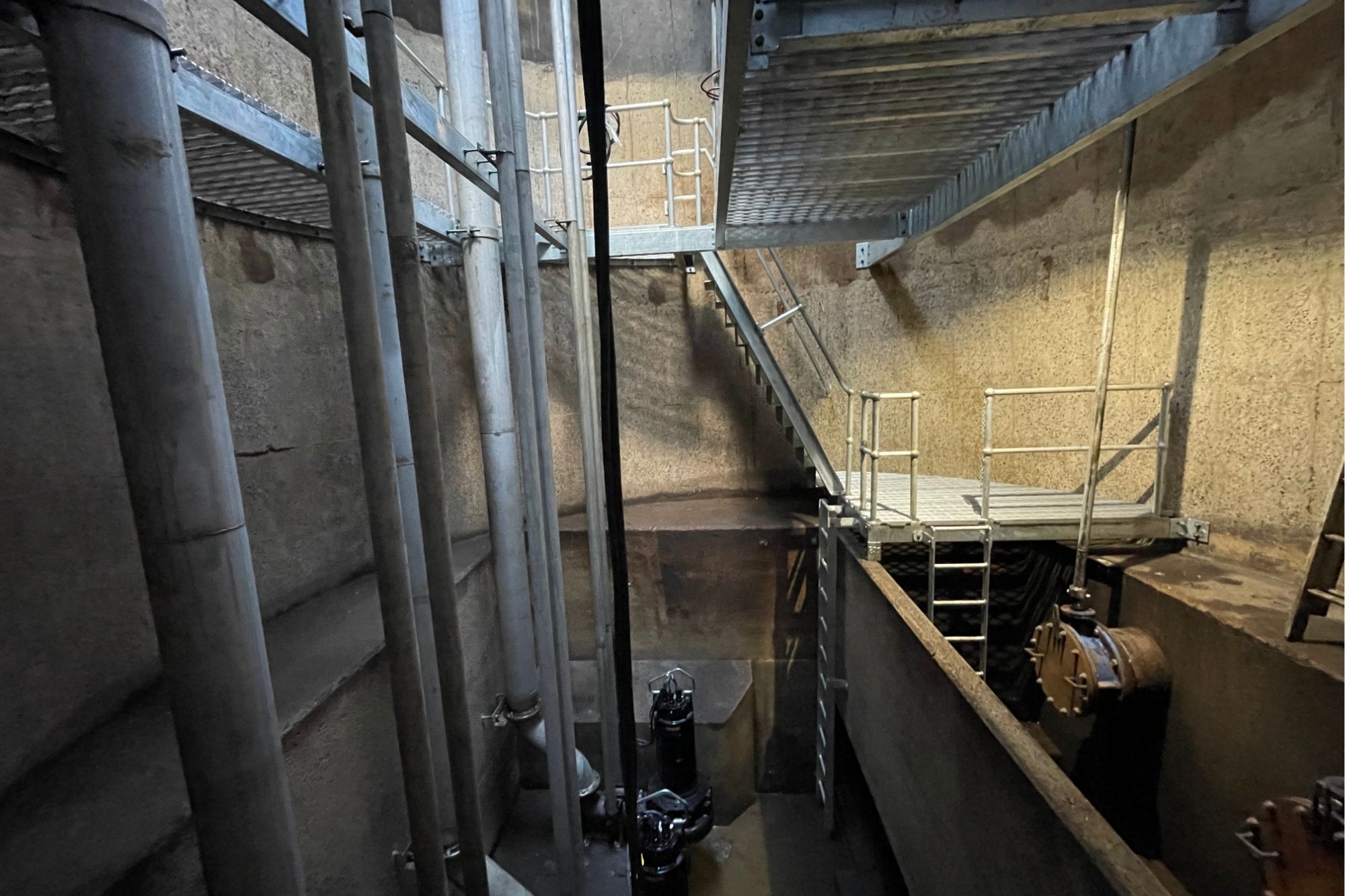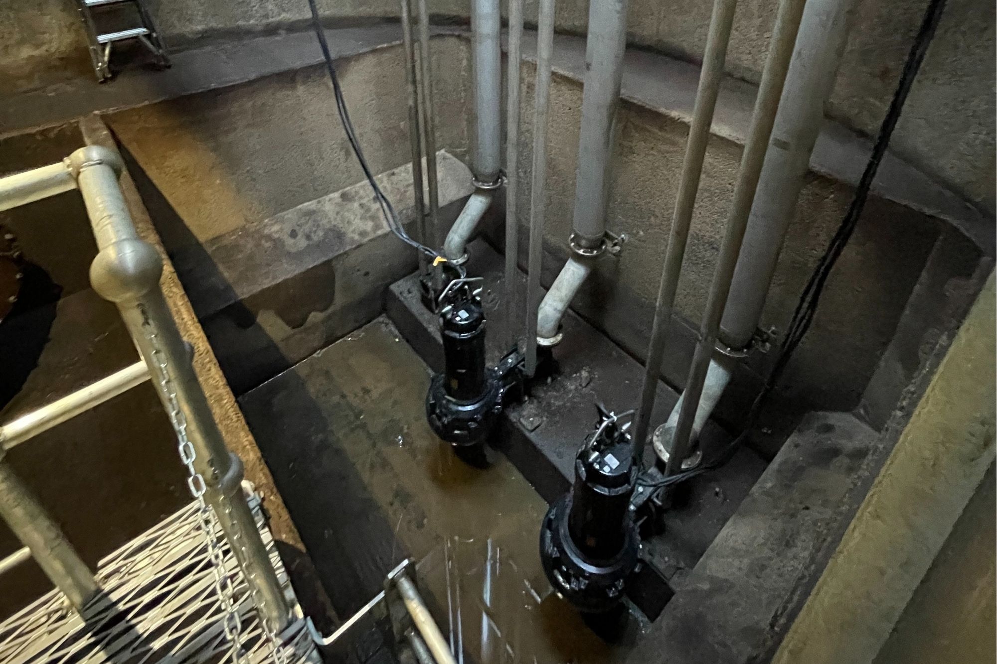 - Install 2 Grindex Cast Electric Submersible Low Lift Pumps 37kw on heavy-duty Stainless-Steel pump column complete with all required stainless-steel fittings.
