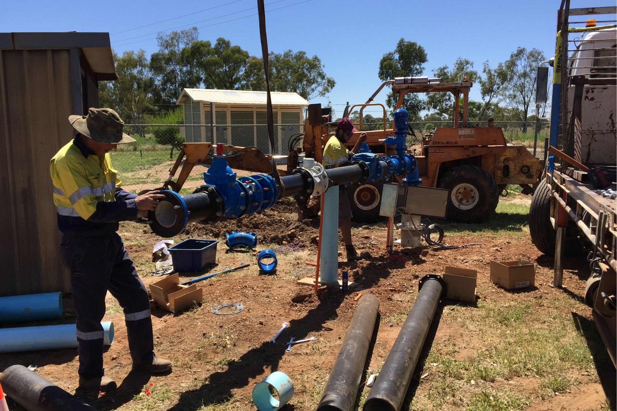 - Approximately 4,000m of 200m PVC PN16 Rising Mains from Bores to Reservoir