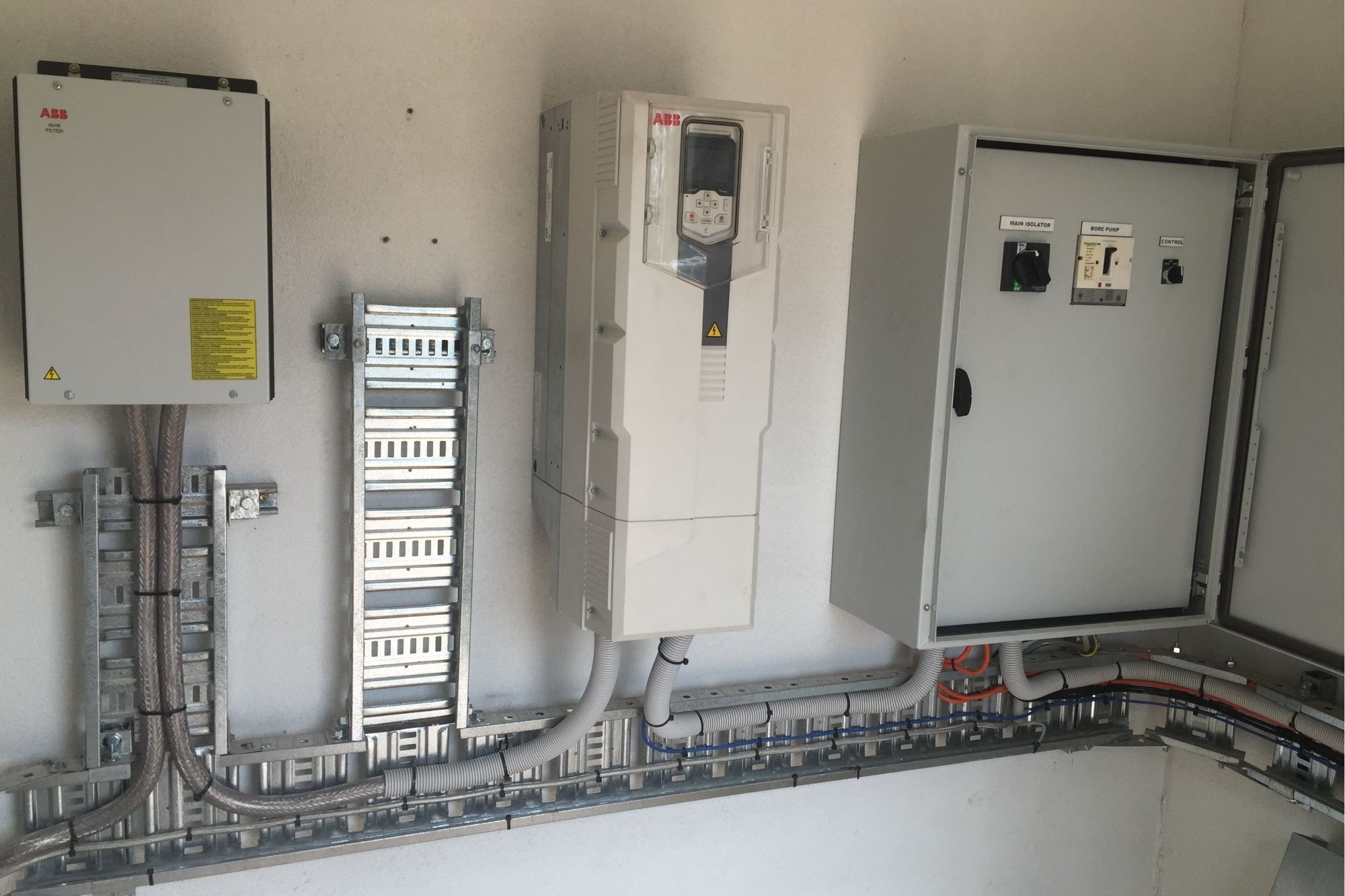 - Design supply and install Electrical pump shed Switchboard and Motor control centre including Variable Speed Pump drive and all to interface with councils clear Scada control system to monitor bore water depth and current and cumulative flow rates to council reservoir.