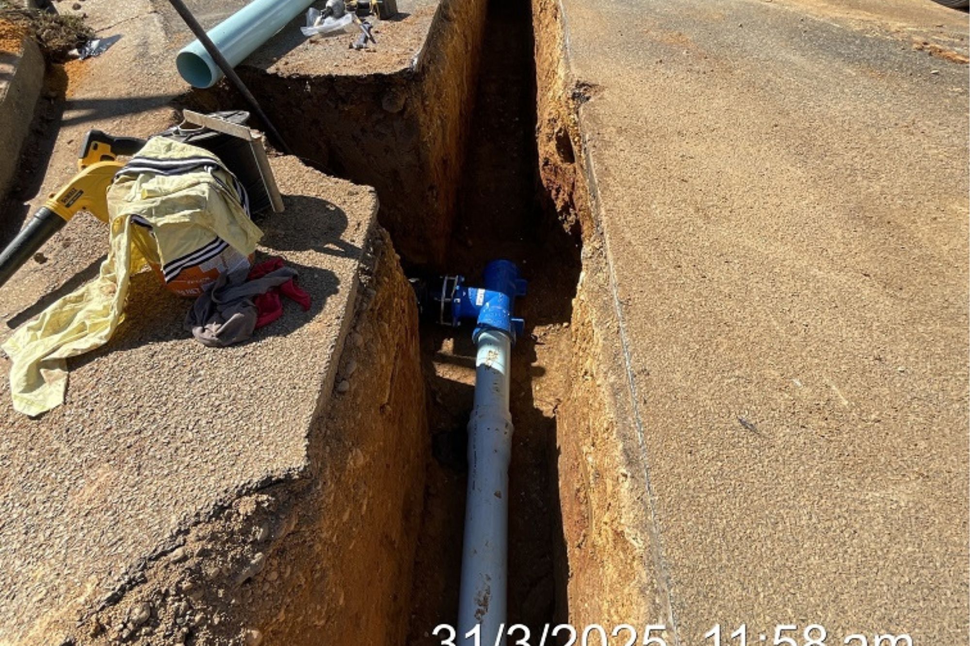 - Open trench Construction of approximately 900m of DN100 PVC Water main.